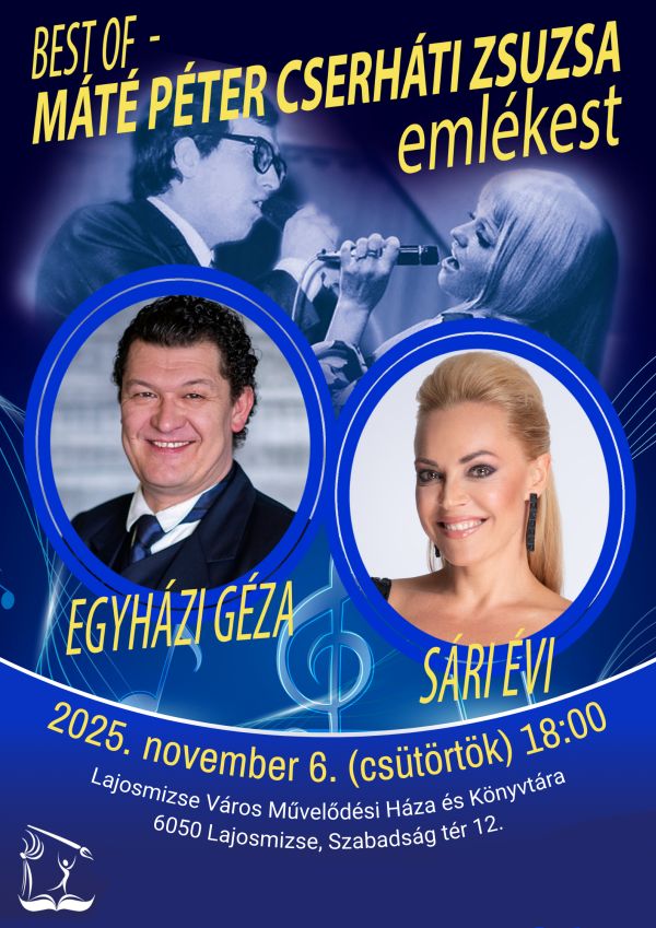 Best of Máté Péter Cserháti Zsuzsa emlékesten a két legendás pop ikon dalait Sári Évi és Egyházi Géza köti csokorba műsorukban.