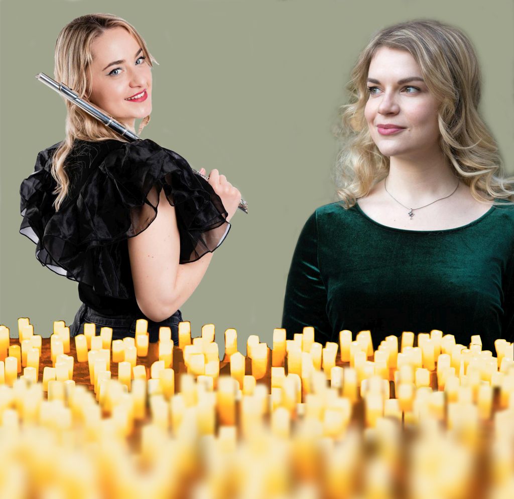 A karácsonyi hangulatban és gyertyafényben úszó Díszteremben Csabay Zsuzsanna és Szabó Eszter igazi ünnepi örökzöldeket szólaltat meg.